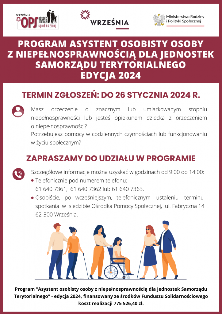 Ośrodek Pomocy Społecznej we Wrześni od lutego 2024 r. będzie realizować Program „Asystent osobisty osoby z niepełnosprawnością” dla Jednostek Samorządu Terytorialnego – edycja 2024.