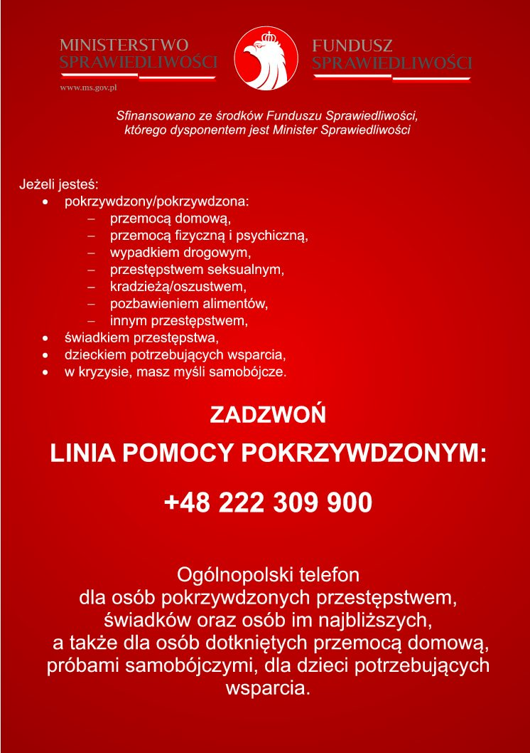 Linia Pomocy Pokrzywdzonym jest sfinansowana ze środków Funduszu Sprawiedliwości, którego dysponentem jest Minister Sprawiedliwości oraz spełnia następujące funkcje: