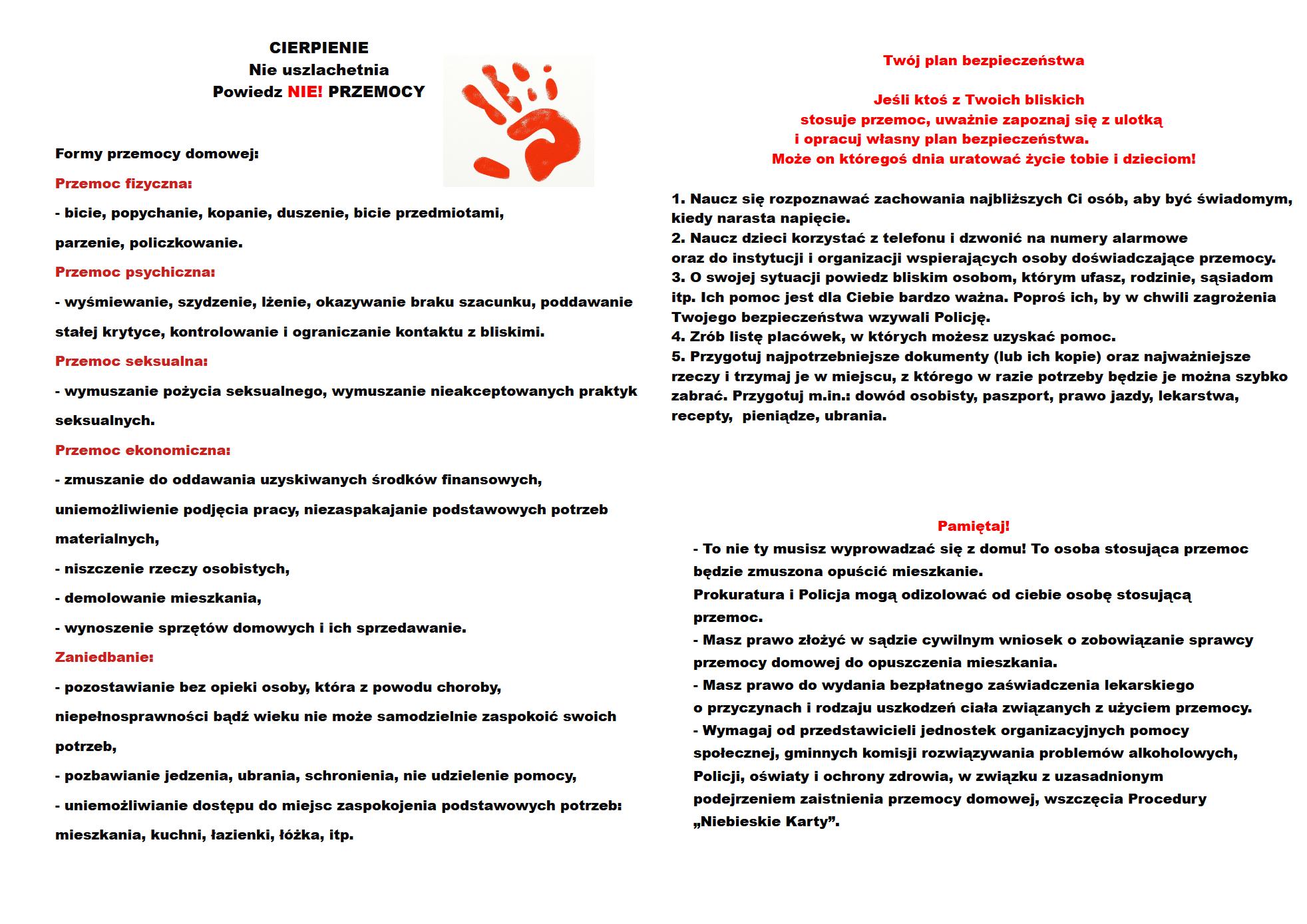 Osoba wobec której stosowana jest przemoc, doznaje cierpienia i szkód fizycznych i psychicznych